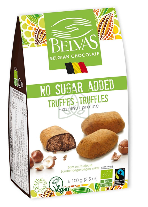 Belgijskie Czekoladki Trufle z Orzechami Laskowymi Bez Dodatku Cukrów Bezglutenowe BIO 100 g Belvas