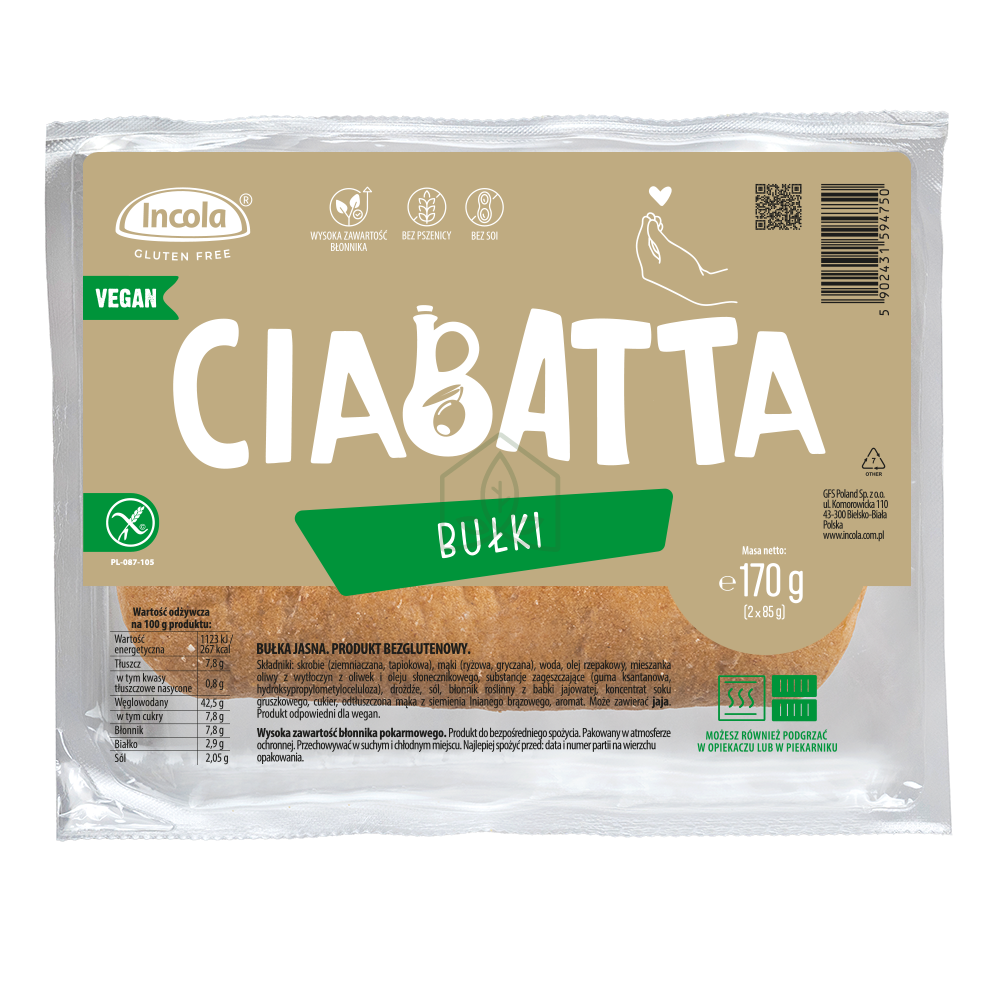 Bułki Ciabatta Bezglutenowe 170 g Incola
