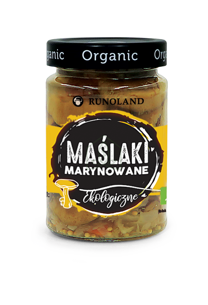 Ekologiczne maślaki marynowane firmy Runoland to doskonałej jakości grzyby, które zostały zebrane wyłącznie w polskich lasach. Produkt nie zawiera żadnych konserwantów, polepszaczy, barwników czy aromatów. Wszystkie użyte składniki: marchew, cebula, gorczyca dodatkowo poprawiają ich walory smakowe.W przetworach wykorzystywane są wyłącznie wyselekcjonowane grzyby - najwyższej jakości .z lasów w których przez co najmniej 3 lata nie były stosowane żadne środki chemiczne. Dzięki temu mamy pewność, że nasze maślaki marynowane są w pełni naturalne i zdrowe. Jakość produktów jest systematycznie kontrolowana przez jednostkę certyfikującą EKOGWARANCJA. Ekologiczne maślaki marynowane bardzo przypominają większość spożywanych przez nas warzyw. Zależnie od gatunku zawierają one od 80% – 93% wody. Pozostałą część ich masy stanowią przede wszystkim białka. Są za to bogate w węglowodany, enzymy, sole mineralne, wapń, fosfor, żelazo, a także witaminy. Zawierają witaminę A w postaci karotenu ale także znaczne ilości witamin B1 i B2.Badania wykazały, że wiele gatunków grzybów zawiera także związki antybiotyczne o cennych właściwościach bakteriobójczych. Bogatym ich źródłem okazał się właśnie maślak zwyczajny.