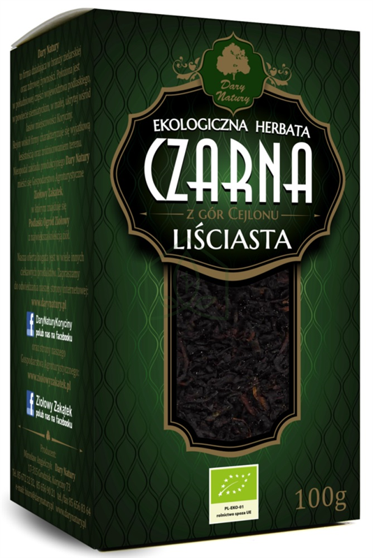 Herbata Czarna Cejlońska Liściasta BIO 100 g Dary Natury