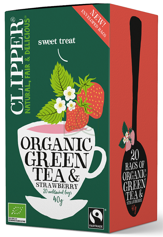 Herbata Zielona z Truskawką Fair Trade BIO 40 g, 20 x 2 g Clipper