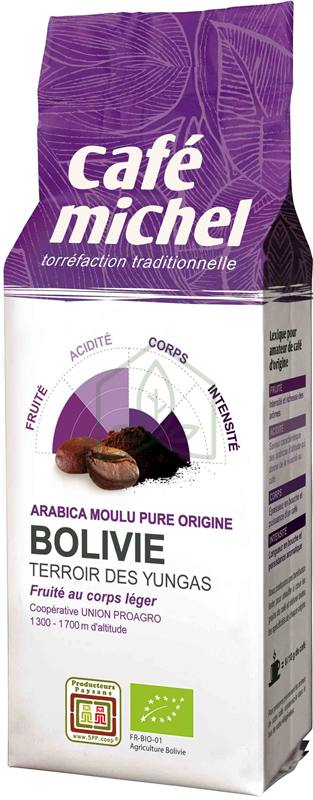 Ekologiczna kawa arabica - kraj pochodzenia Boliwia. Pozyskiwana zgodnie z zasadami Fair Trade. Charakteryzuje się delikatnym, zrównoważonym, lekko cierpkim smakiem. Zawartość kofeiny: 1,20%