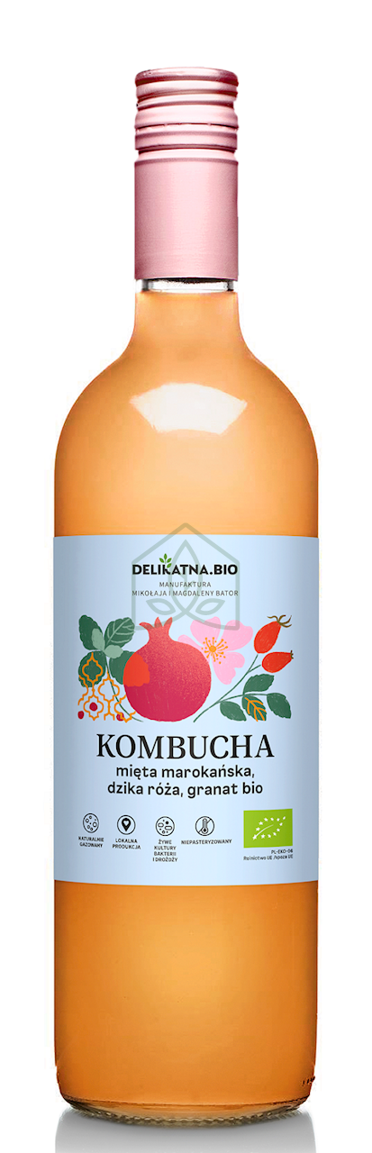 Produkt rzemieślniczy, poddany naturalnej fermentacji na bazie naparu z herbaty z dodatkiem naparu z mięty marokańskiej, soku z dzikiej róży i granatu. Naturalnie musujący.