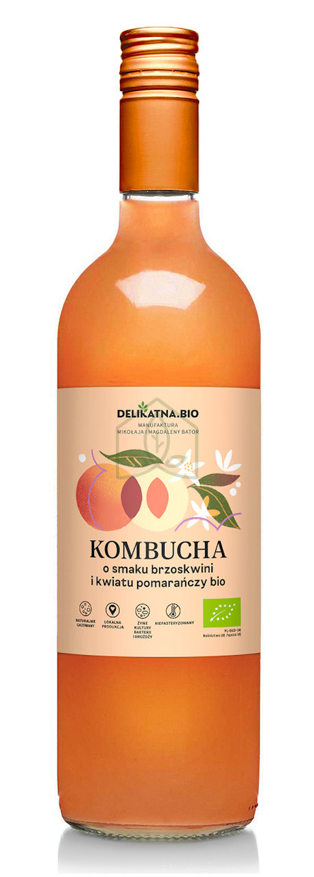 Kombucha o Smaku Brzoskwini i Kwiatu Pomarańczy BIO 750 ml Delikatna