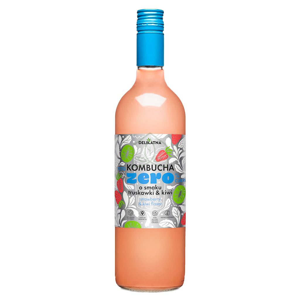 Kombucha o Smaku Truskawki i Kiwi 0% Cukru 750 ml Delikatna