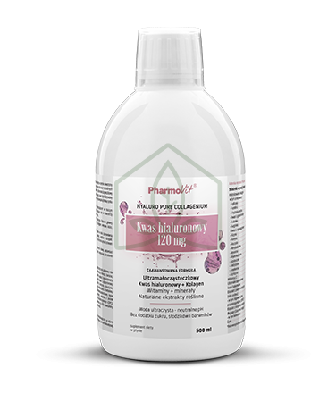 Kwas hialuronowy 120 mg to innowacyjny suplement diety w płynie stworzony na bazie demineralizowanej wody oraz naturalnych koncentratów owocowych. W swoim składzie zawiera ultramałocząsteczkowy kwas hialuronowy (5-10 kDa) w postaci hialuronianu sodu oraz hydrolizowany kolagen. Skład wzbogacony został witaminą C, dobrze przyswajalną formą cynku oraz ekstraktami roślinnymi.