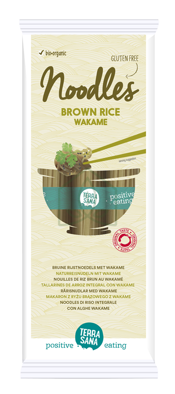 Bezglutenowy makaron spaghetti wyprodukowany z pełnoziarnistej mąki ryżowej z dodatkiem wodorostów wakame, słynących z bycia bogatym źródłem jodu, wapnia i witamin. Doskonale nadaje się do zup, dań z woka i dań kuchni japońskiej.