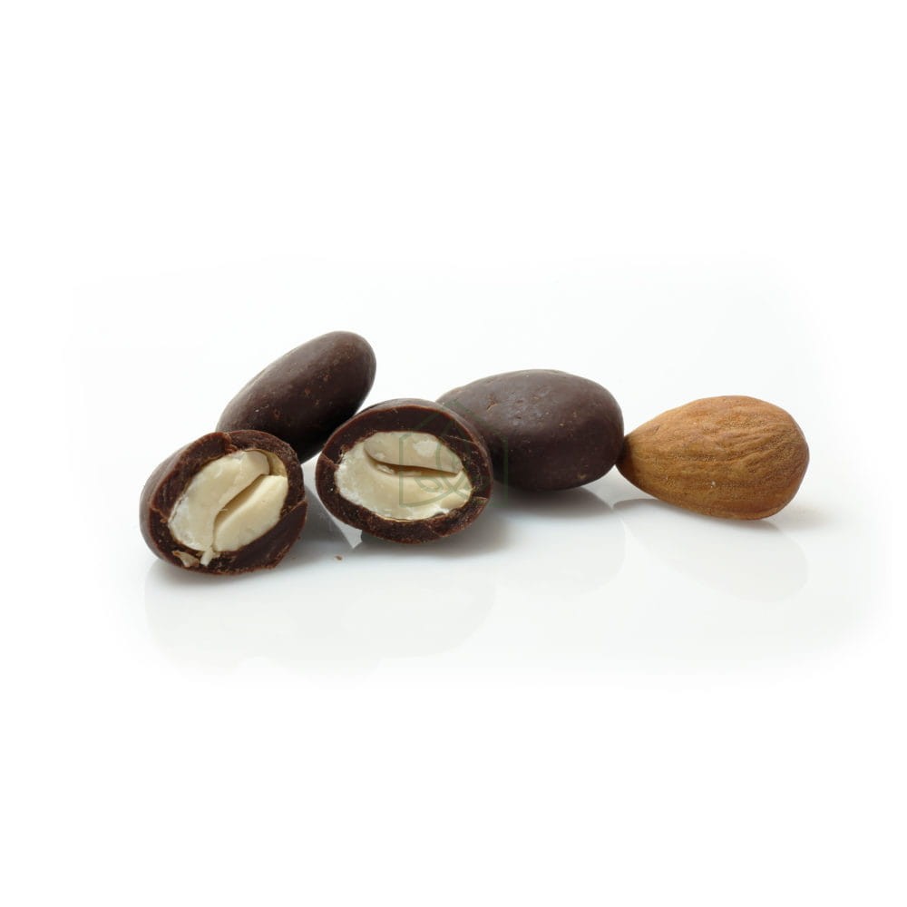 Ekologiczne migdały oblane wysokiej jakości czekoladą, wyprodukowaną wyłącznie z certyfikowanych składników ekologicznych.