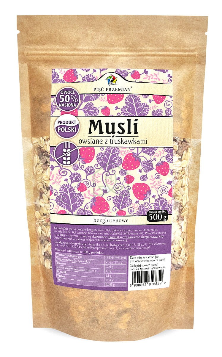 Musli Owsiane z Truskawkami Bezglutenowe 500 g Pięć Przemian