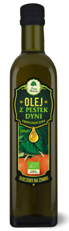 Olej tłoczony jest na zimno z nasion dyni pochodzących z polskich ekologicznych gospodarstw rolnych. Ma przyjemny smak i zapach, dobrze komponuje się z ziemniakami, kaszami, sałatkami, surówkami, rybami.