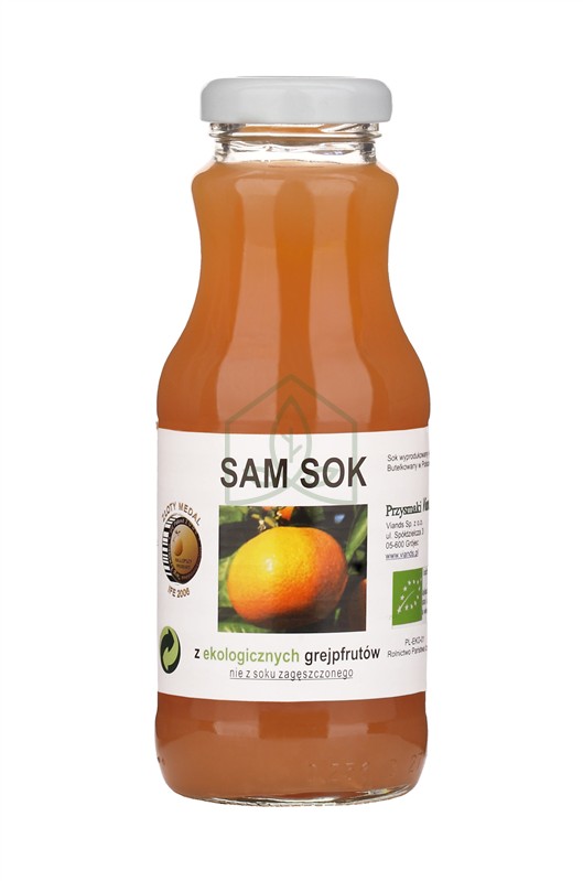 SAM SOK®, czyli sok bezpośredni, wyprodukowany bezpośrednio z ekologicznych cytrusów JAFFA, a nie z soku zagęszczonego (koncentratu). SAM SOK wyciskany jest z owoców w pierwszym i jedynym tłoczeniu, po pasteryzacji zamknięty w szklanej butelce. Nie zawiera dodatku cukru, wody, aromatów, ani konserwanów.