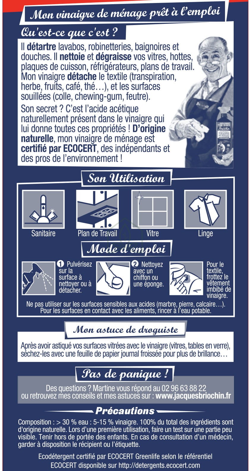 Specjalny spray zaprojektowany specjalnie do utrzymania czystości w domu, dodatkowo usuwa uporczywe plamy z ubrań (plamy po owocach, kawie, herbacie...) i innych powierzchni (klej, guma do żucia...) Jaki jest jego sekret? Wszystko dzięki kwasowi octowemu, zawartemu w płynie! Detergent posiada certyfikat ECOCERT i jest całkowicie biodegradowalny i przyjazny dla środowiska.