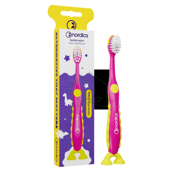 Szczoteczka do Zębów dla Dzieci 6900 Super Miękka Różowo - Żółta Dinozaur Nordics