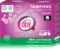 Tampony ze 100% certyfikowanej ekologicznej bawełny niezawierające pestycydów czy pozostałości herbicydów, są niechlorowane. Używając tamponów Gentle Day® unikniesz podrażnień skóry, suchości pochwy, reakcji alergicznych oraz oddziaływania szkodliwych substancji chemicznych – więcej zdrowia dla Ciebie i środowiska. Posiadają certyfikaty GOTS (Global OrganicTextile Standard) i ICEA (Instituto Certificazione Ambientale e Etica).